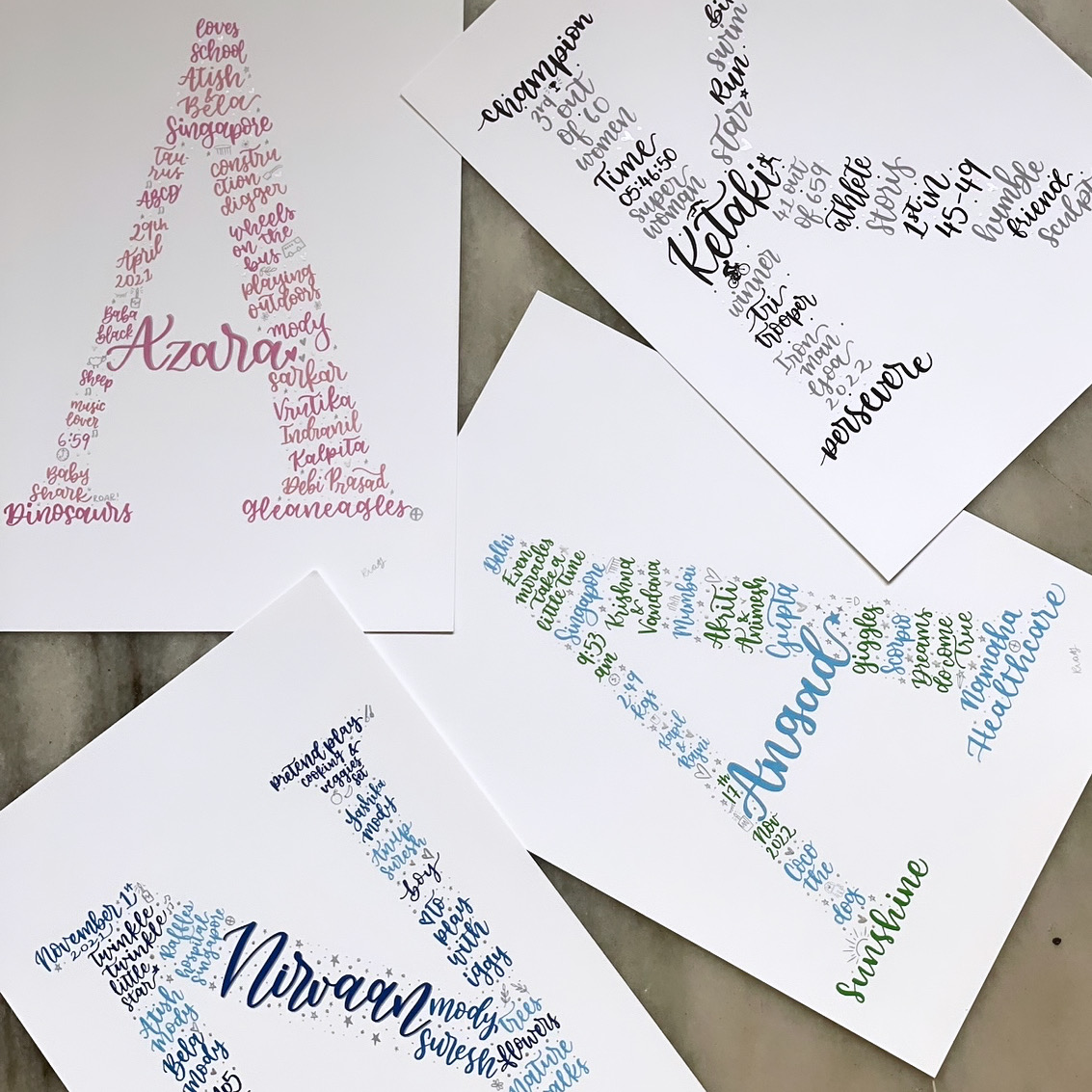Write For Good offers a wide range of customizable calligraphy and design products including stationery, coasters, framed quotes, personalized candles, tealight holders, water bottles, customised artwork, nameplates, personalized invites, peg puzzles, and ornaments.